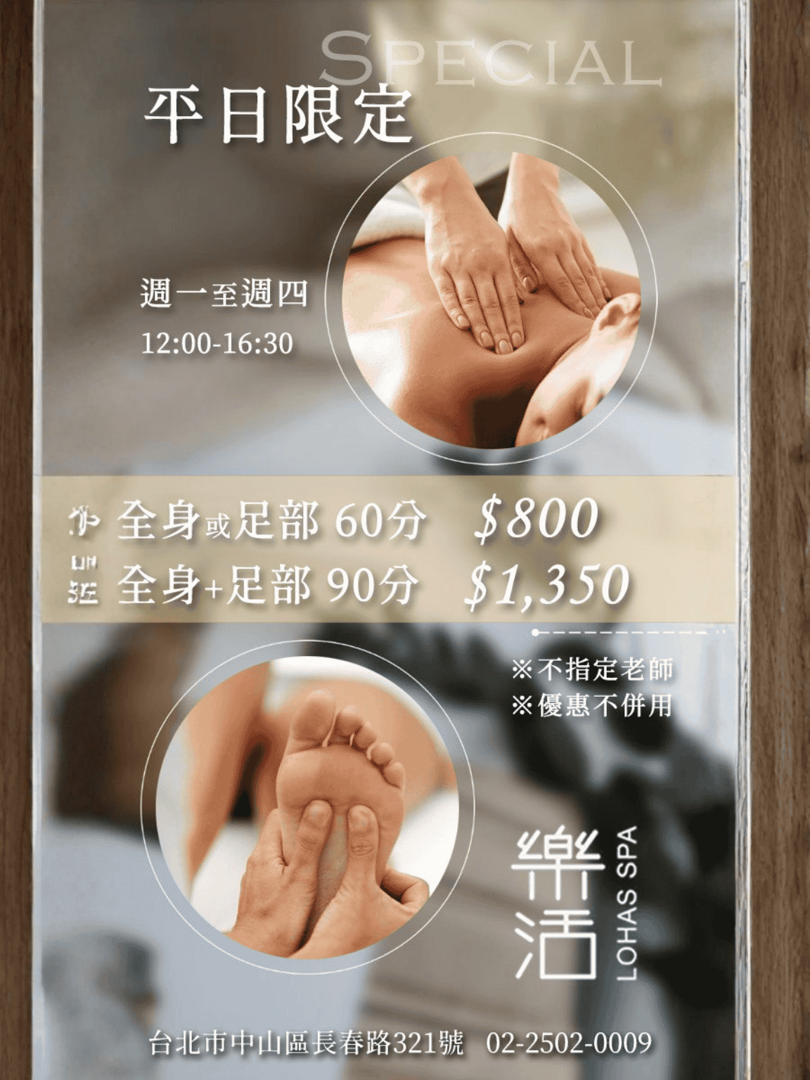 樂活 LOHAS 足體養生館是擁有高評價的中山區按摩店。